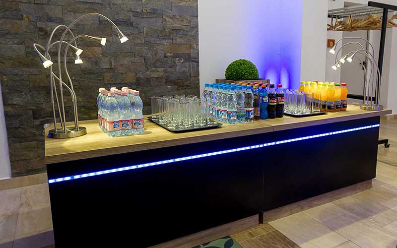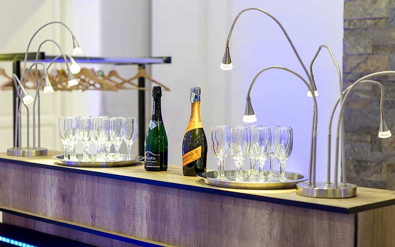 Our event centre’s catering service can meet all your needs, so we can provide anything for anything from a coffee break to a gala dinner, depending on your requirements. We have also set up an exclusive café for business meetings and evening cocktails.