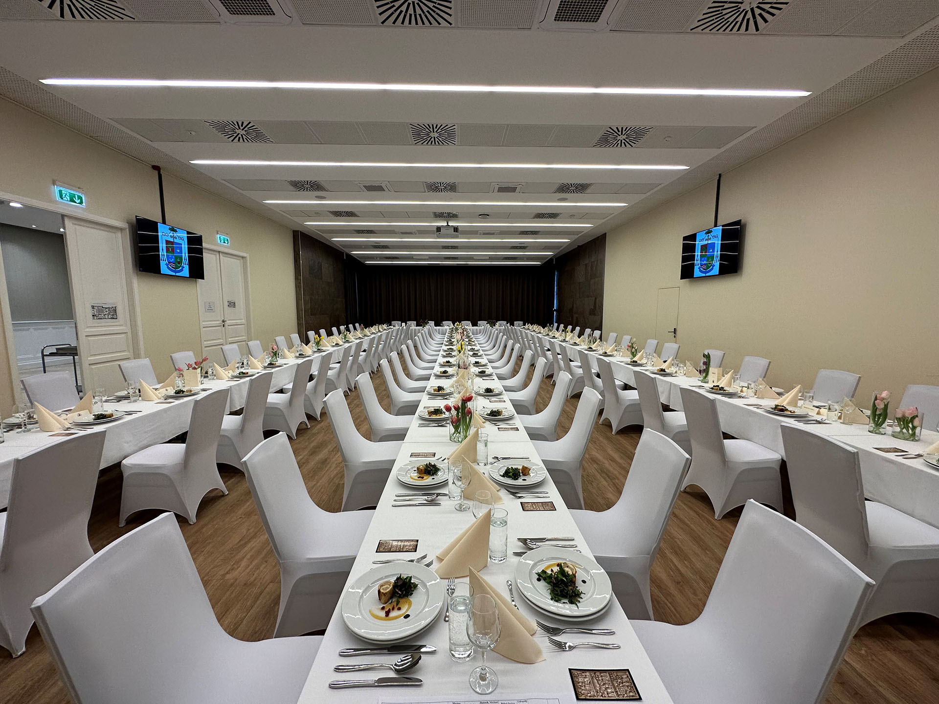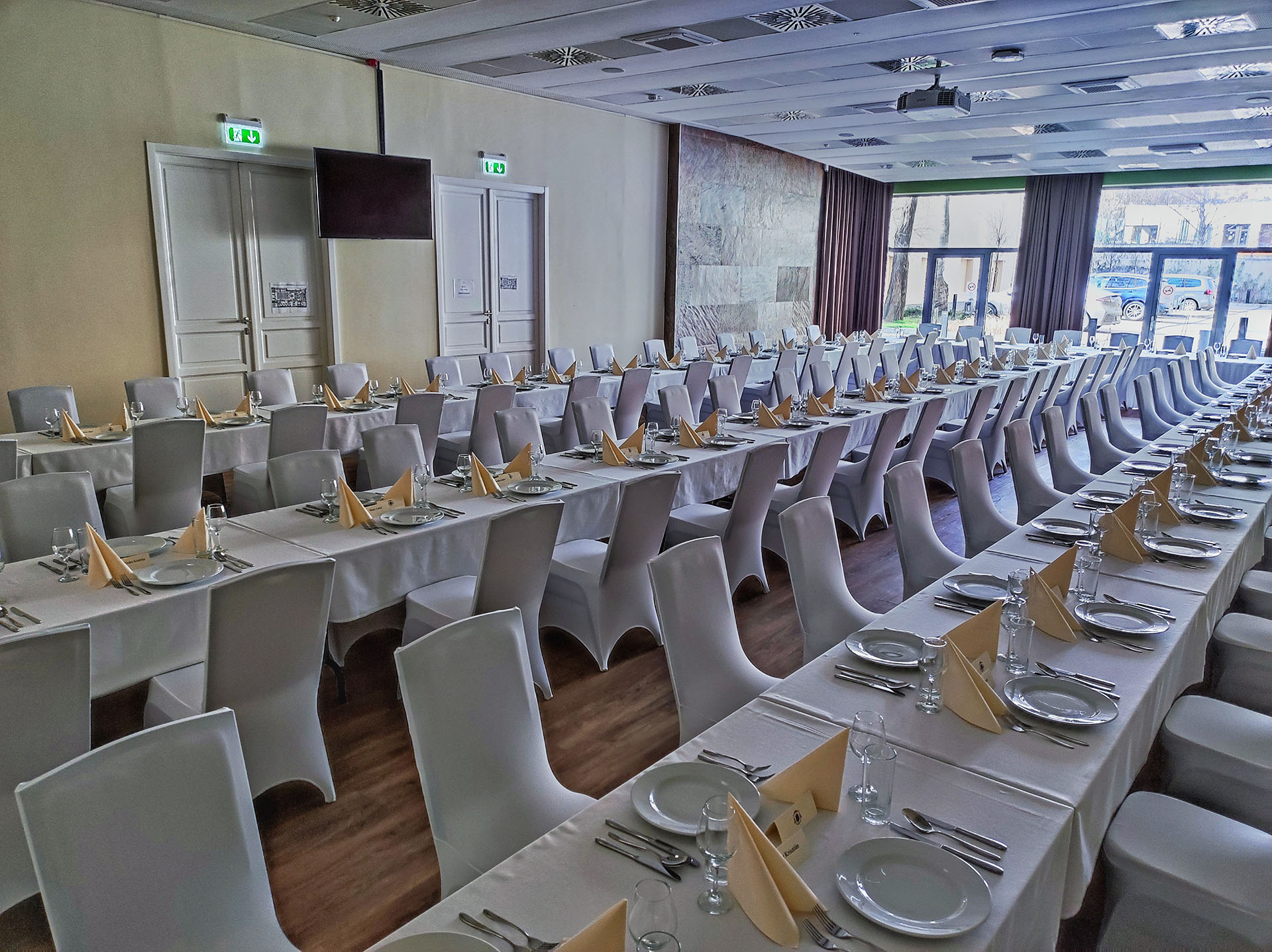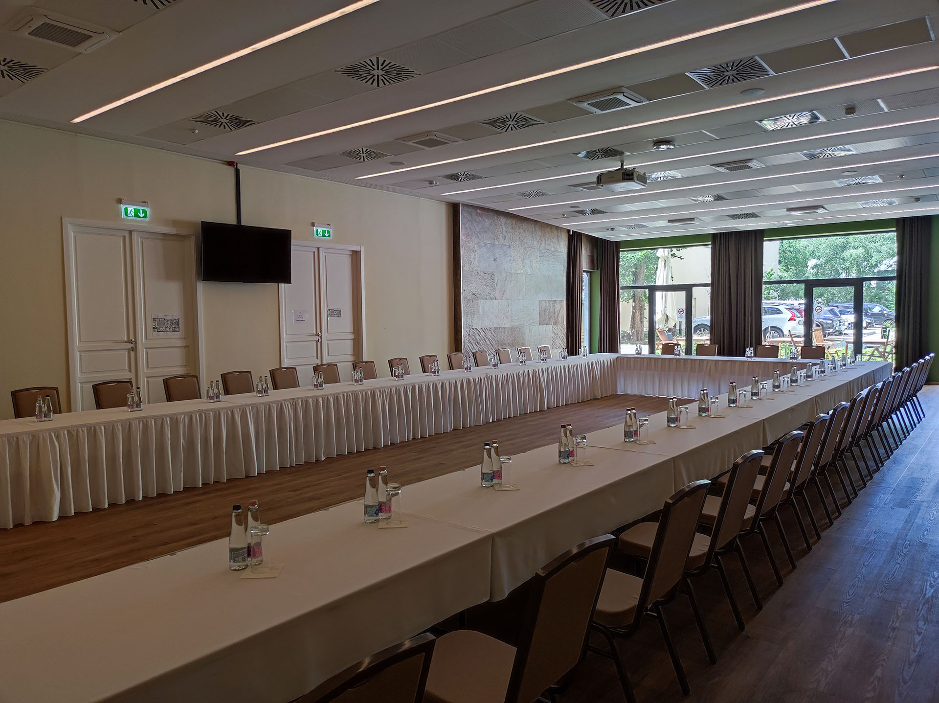 Our 200 m2 event hall on the ground floor has natural light, access to the terrace, exits on several sides, a further 135 m2 of interconnecting rooms and full conference equipment.