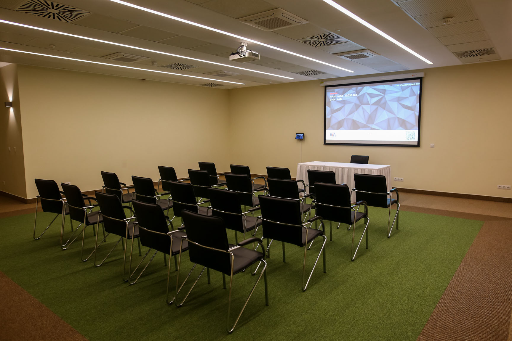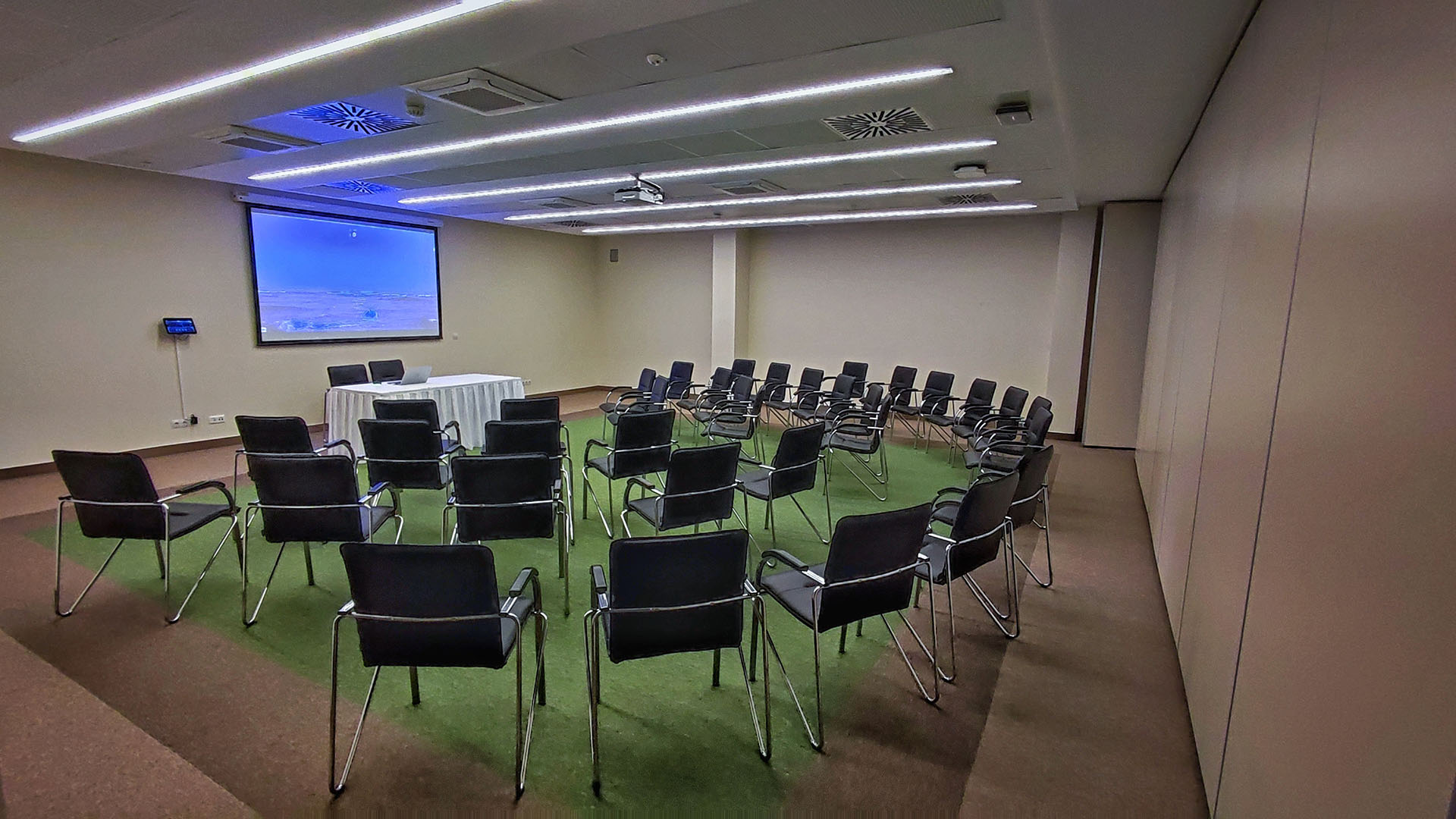 On the -1st floor, our Pest Hall can be requested with a smaller meeting, theatre, classroom or round tables layout.